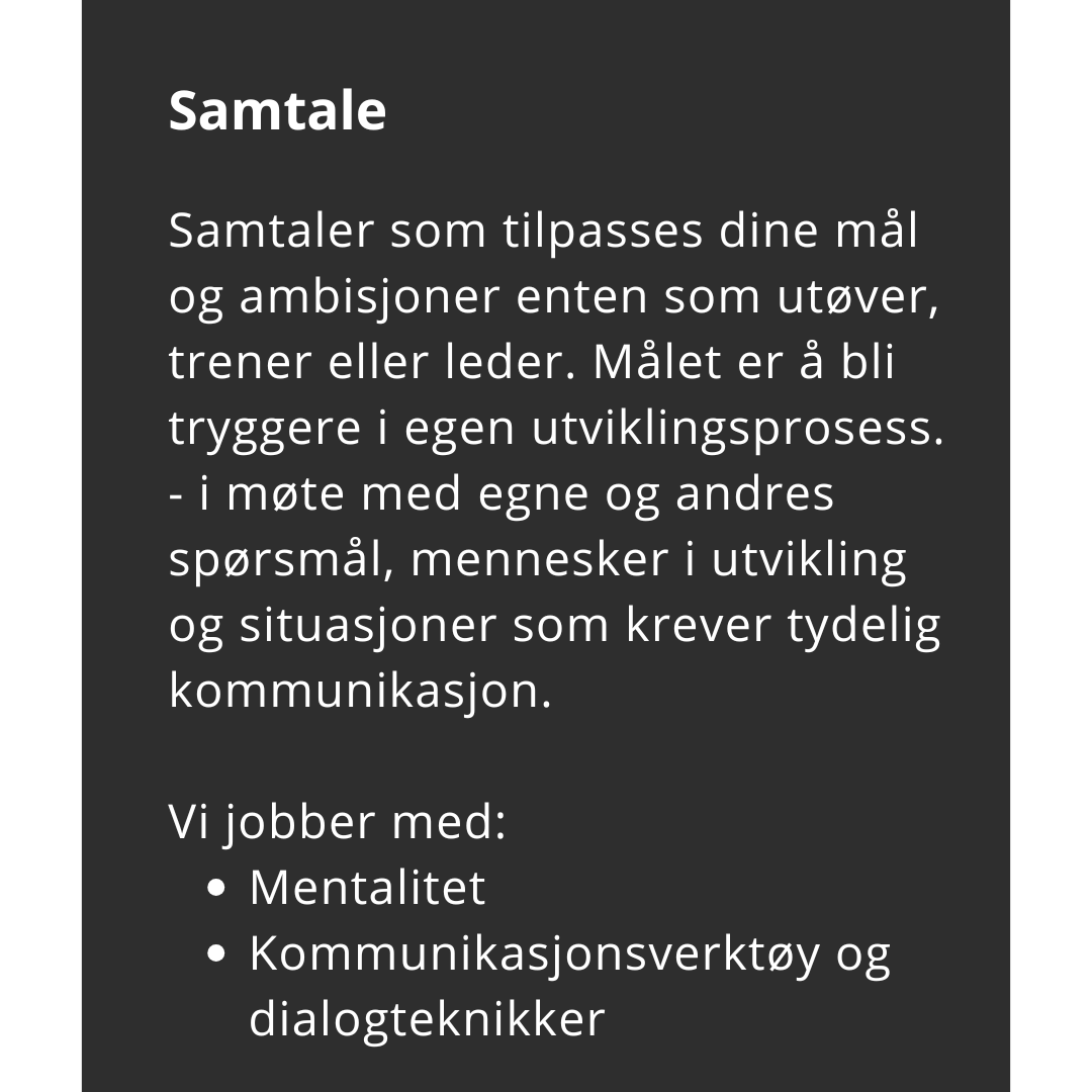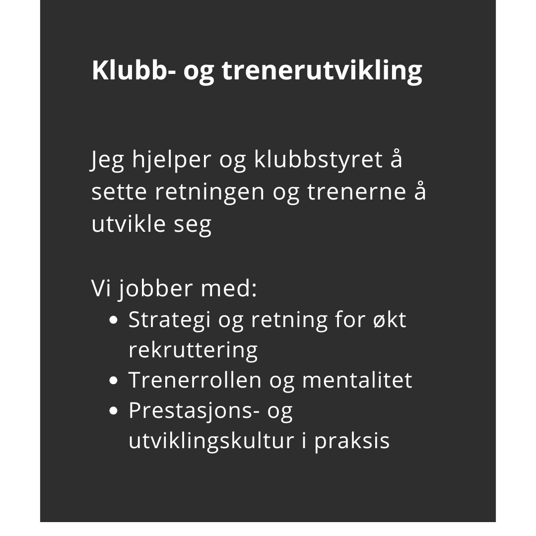 For meg står mental trening, strategi og målsetting som likeverdige verktøy for å utvikle prestasjoner. Gjennom bevisst regulering, målrettet læring, fokus, motivasjon og mental robusthet skaper vi varig utvikling og resultater. Fordi det er det du gjør på veien mot målet som teller.