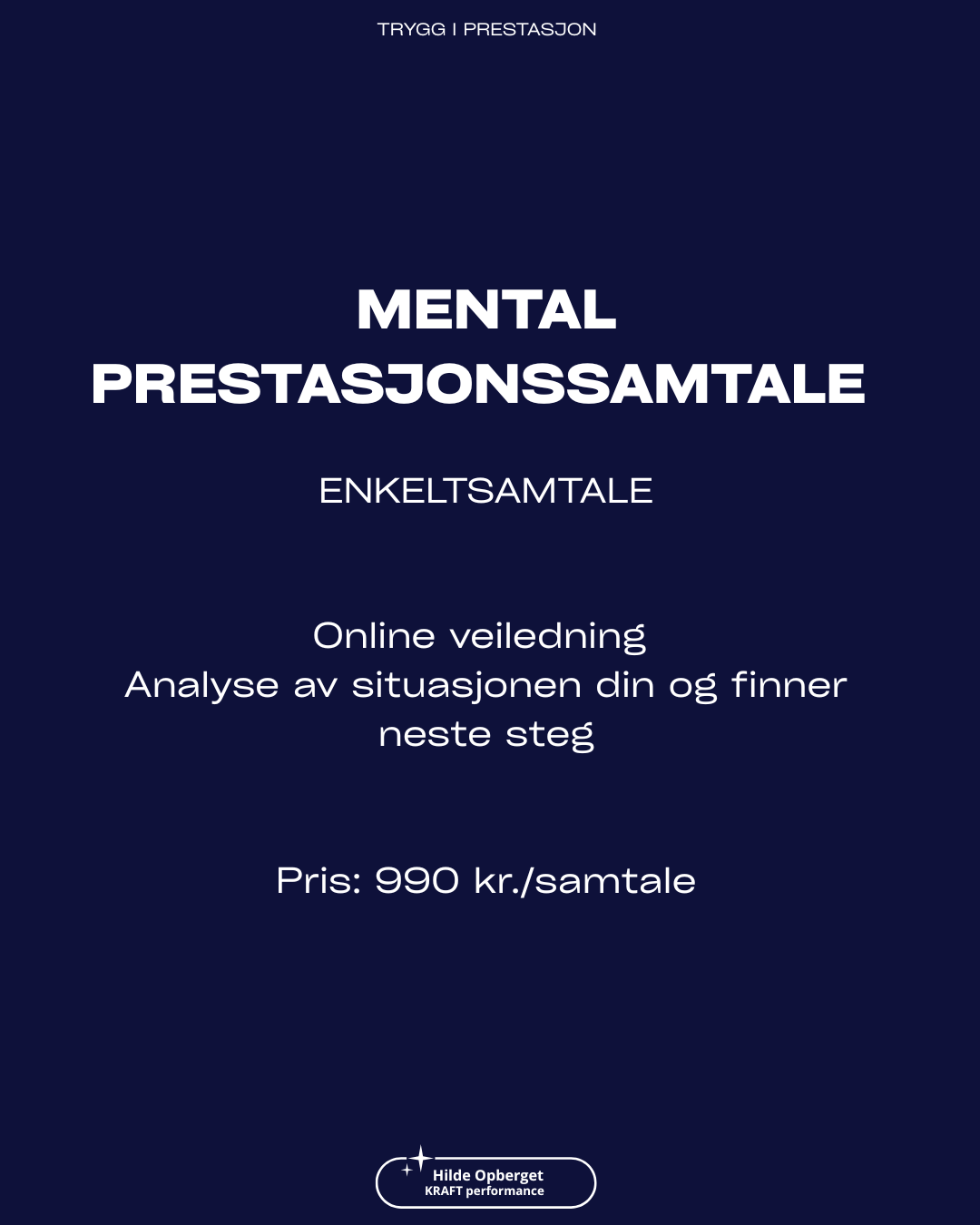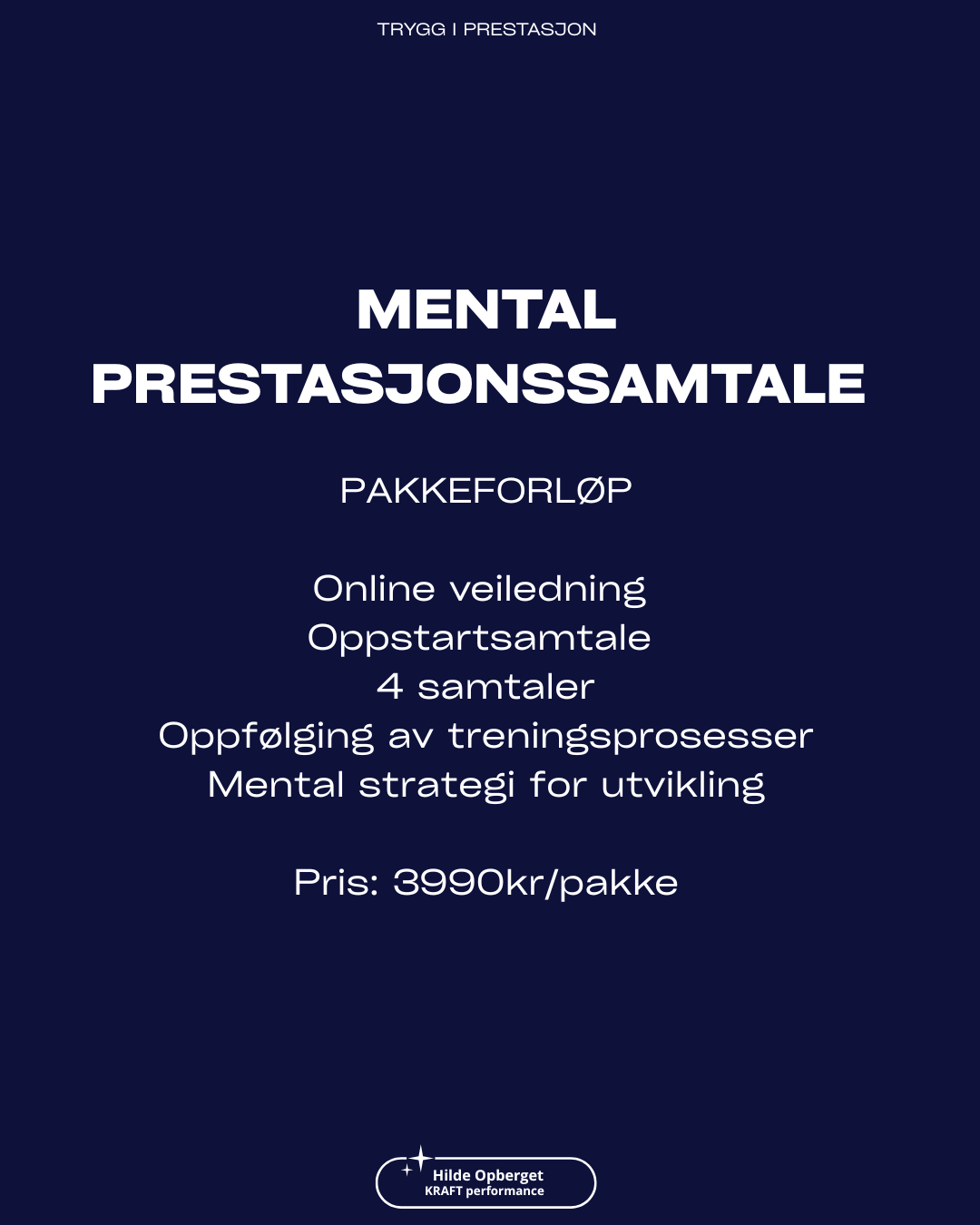 Vil du at treningen skal gi utvikling og føre deg nærmere målene dine? Jeg tilbyr faglig og evidensbasert mental prestasjonssamtale. Dette er en samtale for utøvere, trenere og mosjonister som ønsker å utvikle prestasjon – men opplever at noe stopper fremgangen.